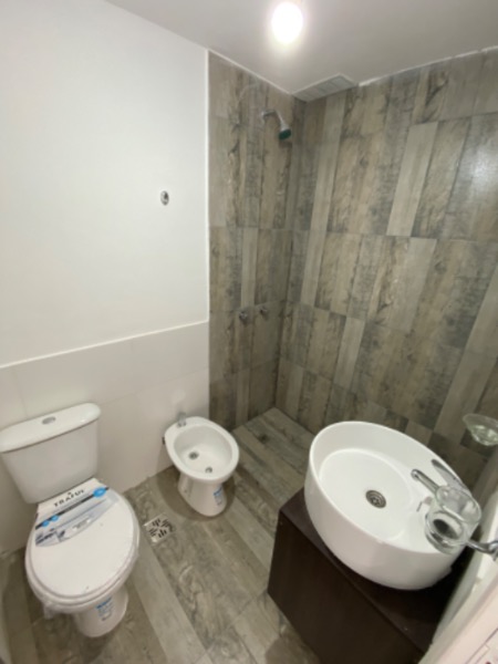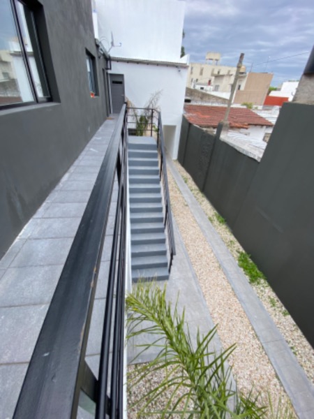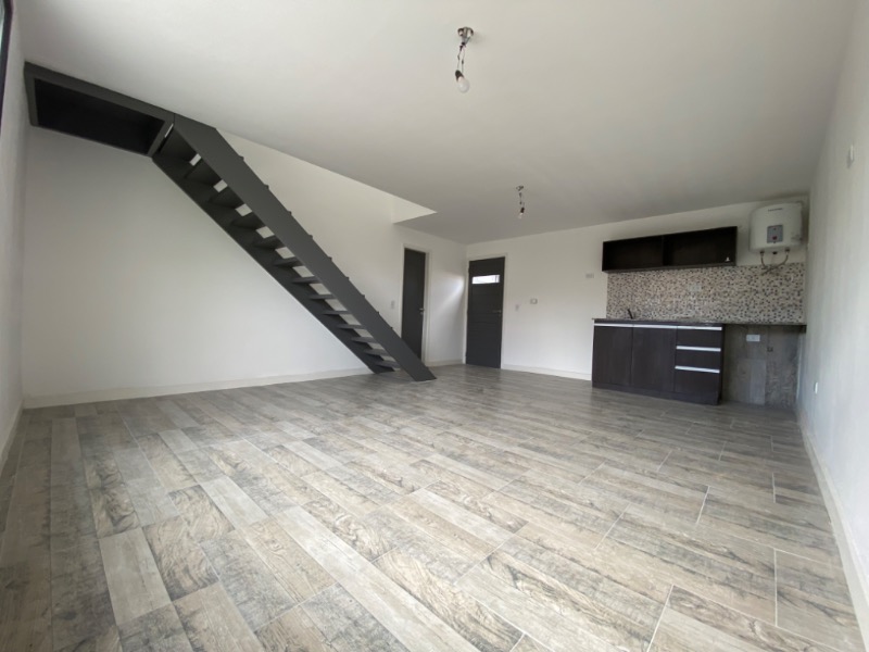 Planta baja: living comedor a la calle con cocina integrada, baño completo